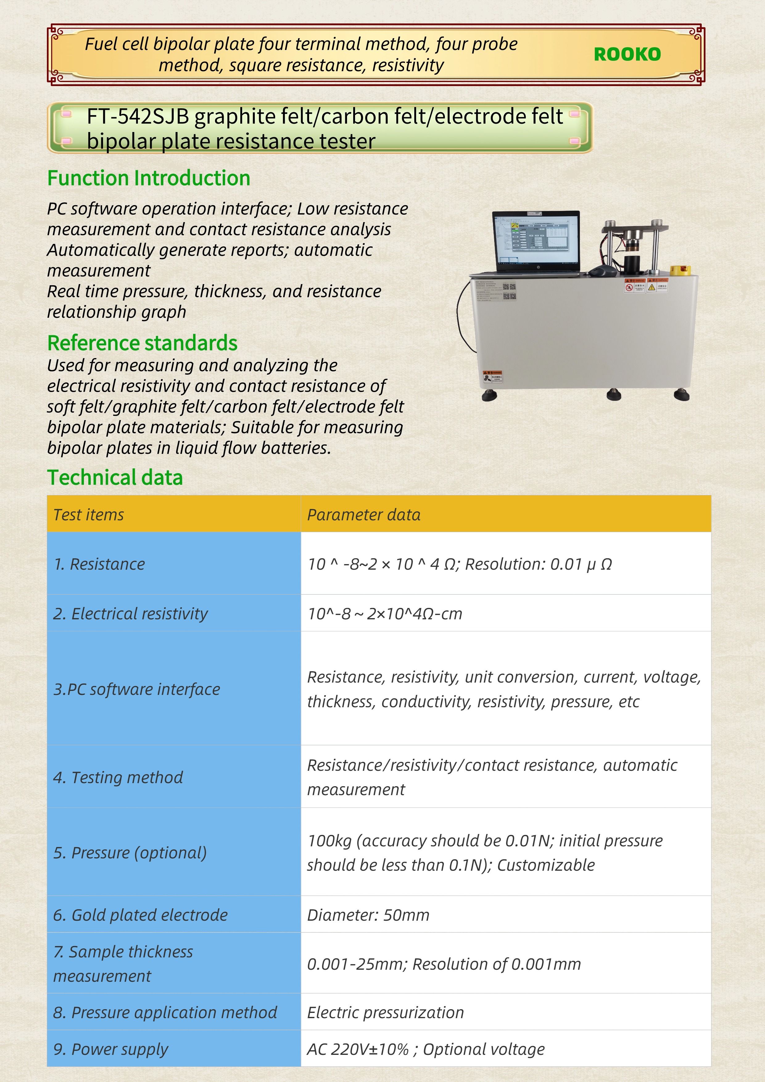 FT-542SJB graphite felt/carbon felt/electrode felt bipolar plate resistance tester